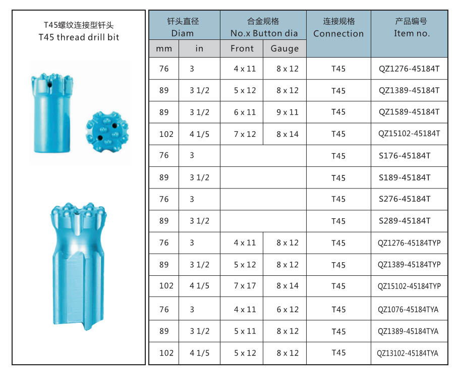 5.Thread type:R22,R25,R28,R32,R38,T38,T45,T51,ST58,ST68,GT60