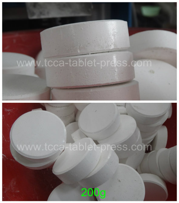 Capacity: press 21 tablets per minute,1260 PCS per hour. widely used to produce big tablets diameter 50-80mm, such as 200g chlroine tablets/salt tablets.