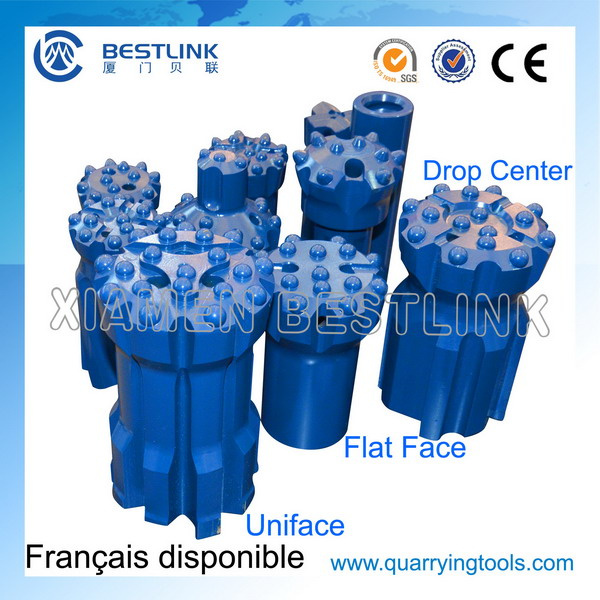 Uniface drill bits combine the best features of the former Flat-Face series of bits (for hard, abrasive rock formations) with those of the former Drop-Center series (for mixed rock conditions and fractured formations).