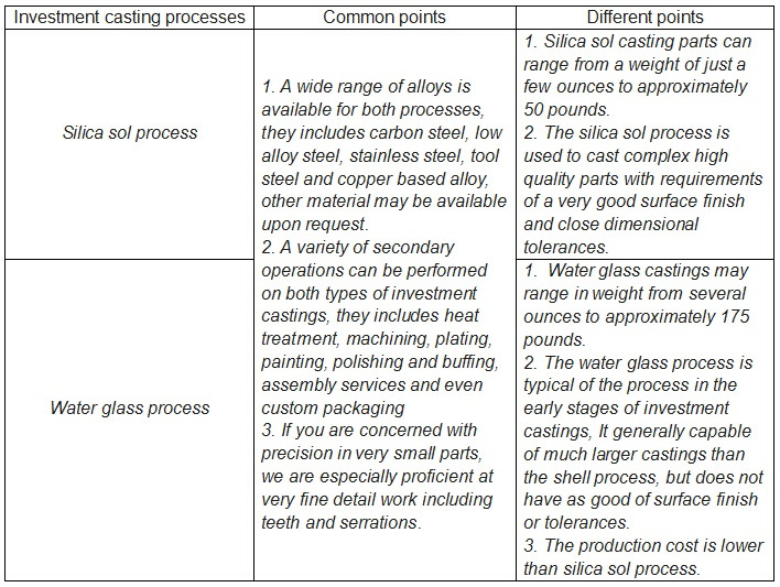 We offer customers two types of investment cast processes